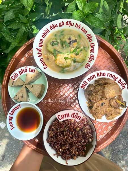 Bữa cơm hôm nay của Thực dưỡng Minh Tâm Đức là sự kết hợp tinh tế giữa ngũ cốc nguyên cám, đậu đỗ bổ máu, thực vật nhiều enzyme sống và các nguyên liệu giàu chất xơ. Những món ăn này không chỉ giúp ổn định đường huyết, giảm viêm, tăng cường tiêu hóa, mà còn hỗ trợ gan thận hoạt động nhẹ nhàng hơn, tăng đề kháng và mang lại cảm giác nhẹ bụng, tinh thần thư thái sau khi ăn.